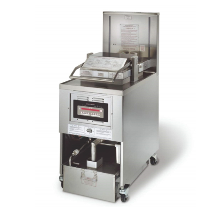 Dimensions : 500*1030*1180mm, 170KG 110V/220V, 50-60Hz. Alimentation en gaz naturel/GPL Consommation de gaz 0,48 kg/h Capacité : 25 L (6-8 kg de viande de poulet, 4-5 pièces de poulet entier) Température : 50~250°C Avec pompe à huile (système de filtrage automatique de l'huile) Avec commandes par ordinateur (HENNY PENNY 8000) Panier et marmite à friture en acier inoxydable 304 de qualité alimentaire